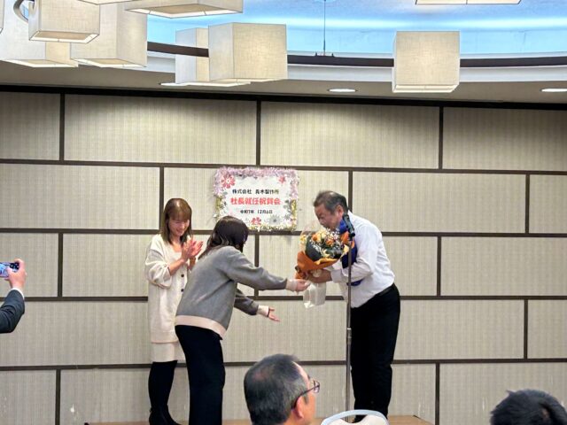 12月6日、ホテル信濃路にて社長就任祝賀会兼忘年会を行いました。 新社長を中心に来期からの新体制に向けて、団結して会社を発展させて行きましょう。 皆様、今年もお疲れ様でした。